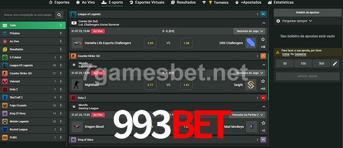 O 993Bet oferece uma grande seleção de opções de apostas em e-sports com probabilidades competitivas